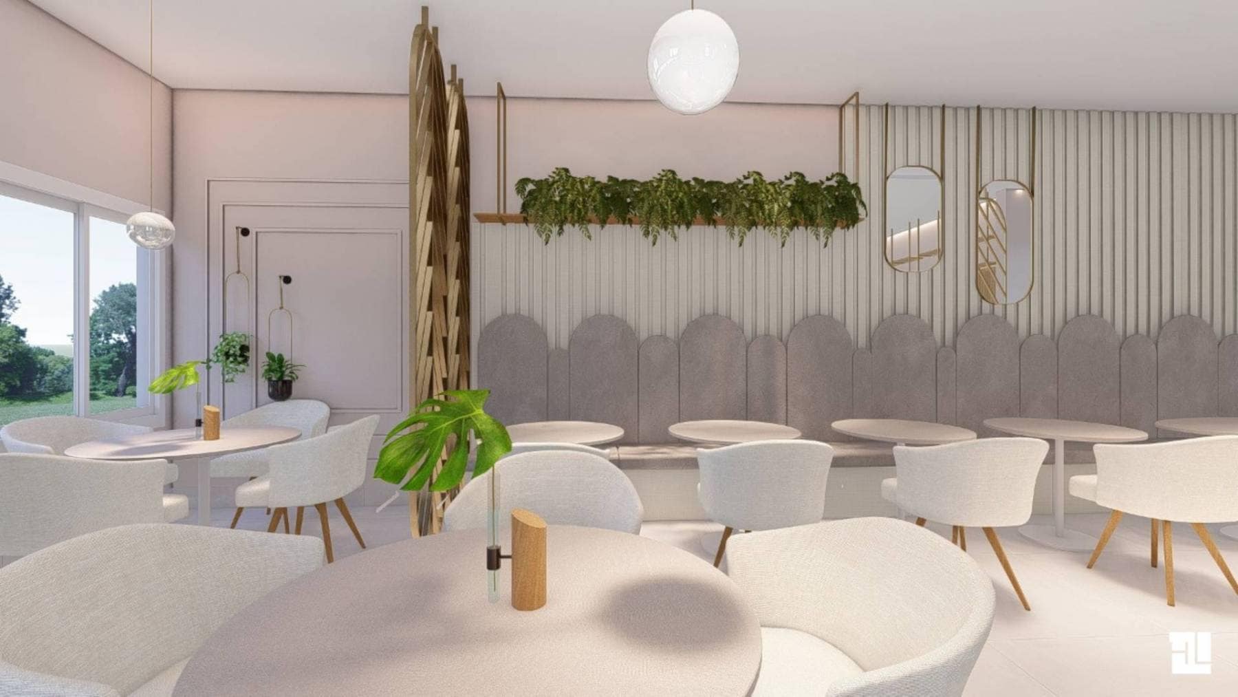 A Cafeteria foi cuidadosamente projetada com mesas confortáveis e uma atmosfera convidativa. Elementos claros e iluminados criam um ambiente amplo e tranquilo, enquanto janelas amplas permitem a entrada de luz natural, conectando os usuários ao exterior.