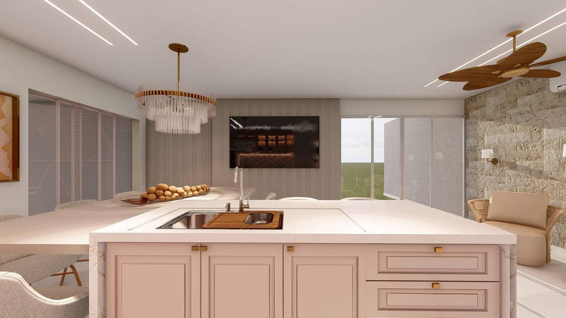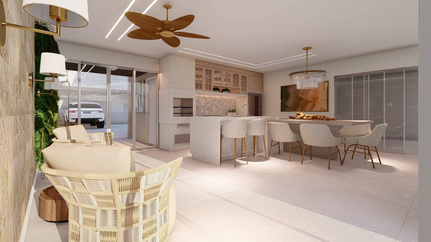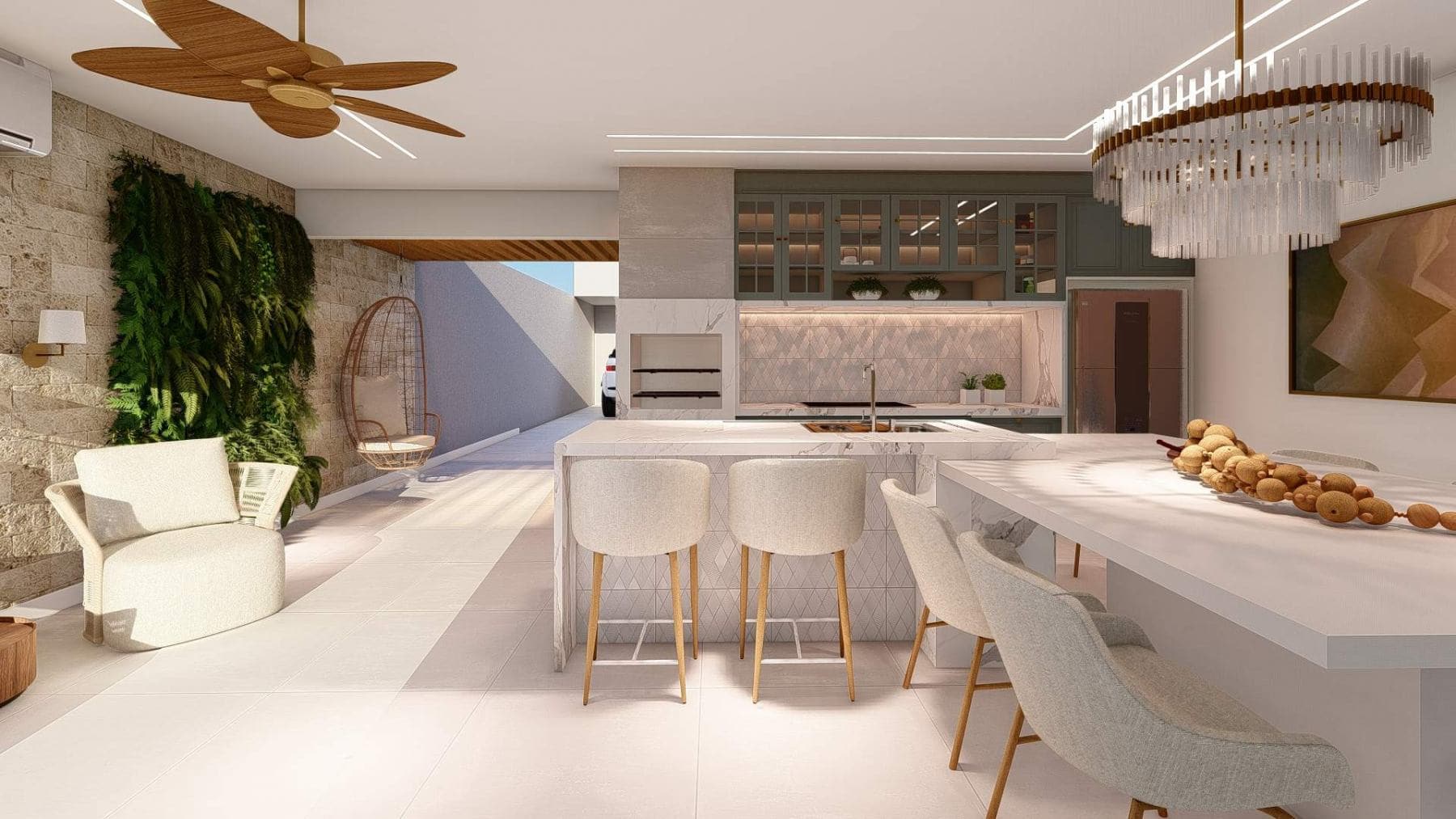 O resultado final é uma residência harmoniosa, que combina elegância e modernidade em todos os espaços. A cozinha gourmet é um ambiente acolhedor para receber convidados, o lavabo é sofisticado e refinado, e o quarto proporciona uma sensação serena e confortável. O projeto cria um espaço agradável e funcional para os moradores desfrutarem do seu lar com estilo e conforto.