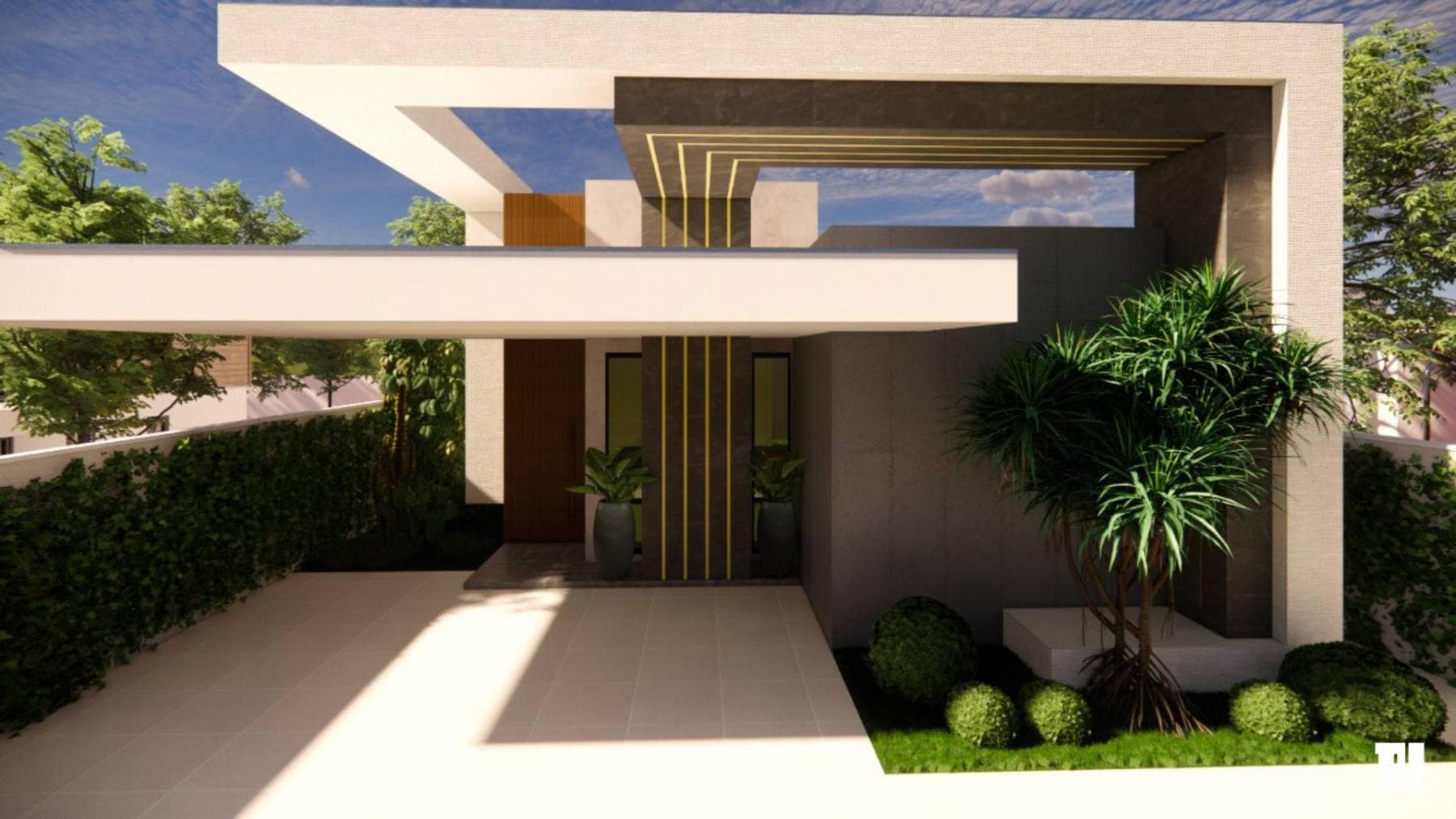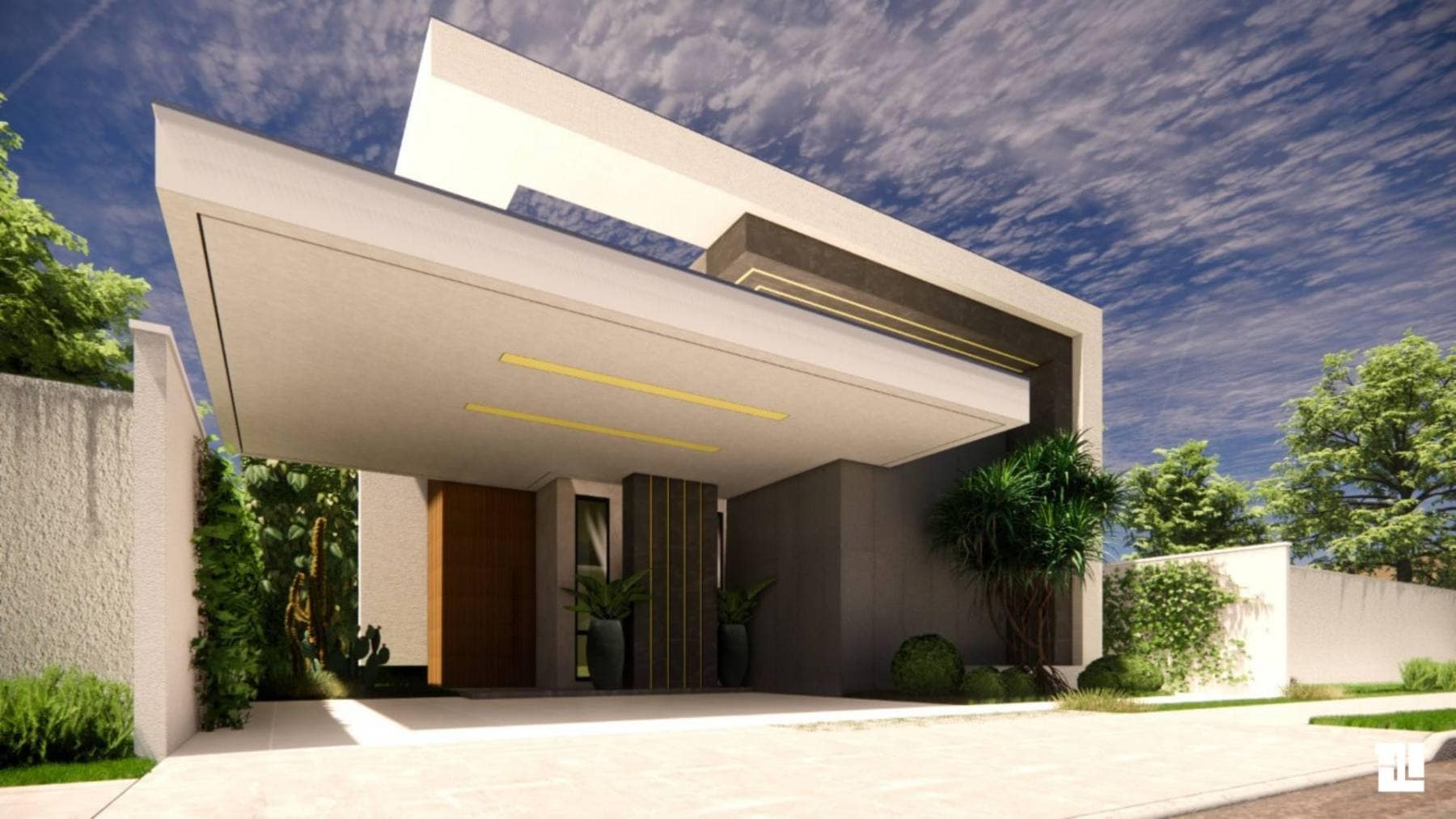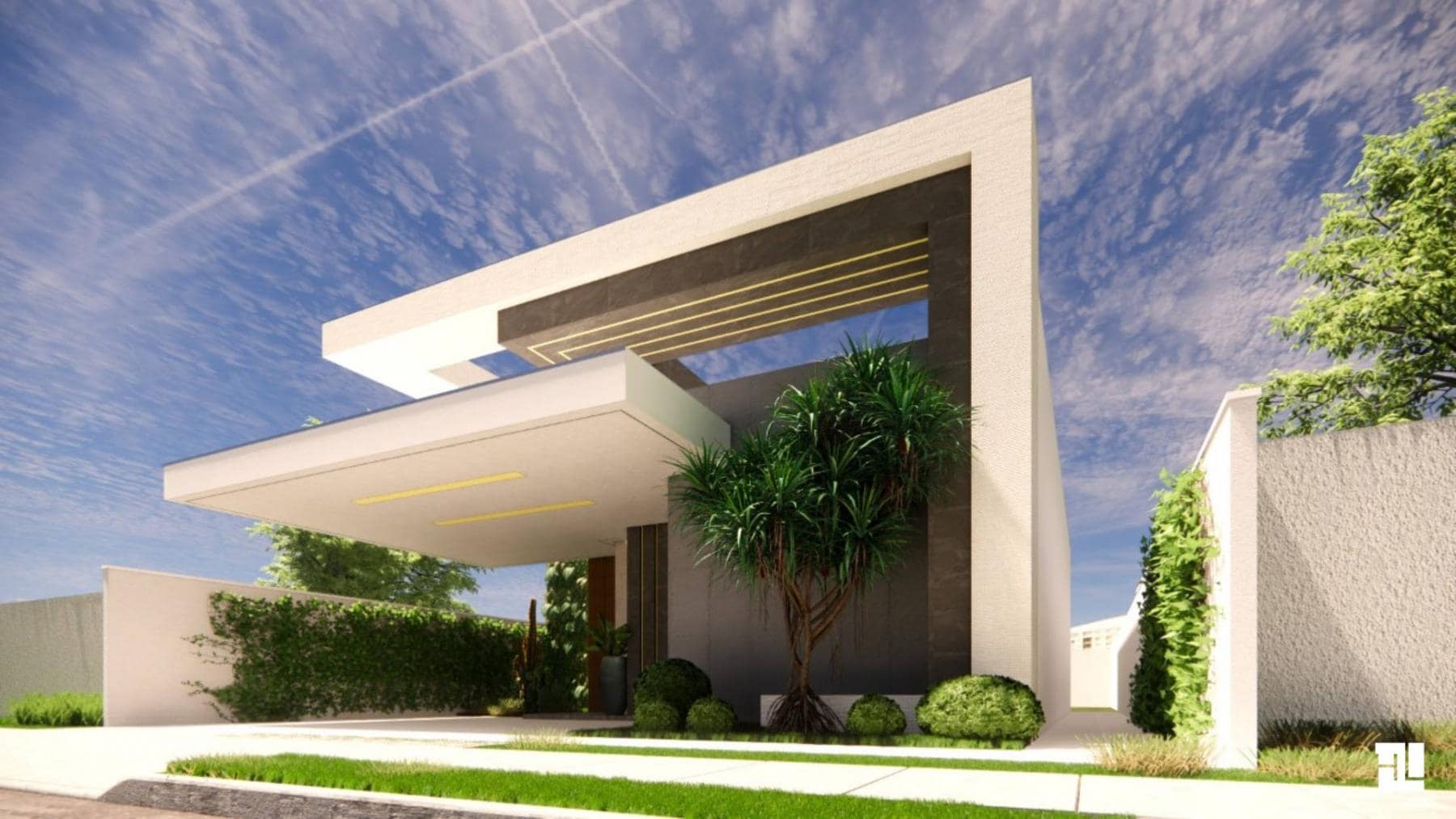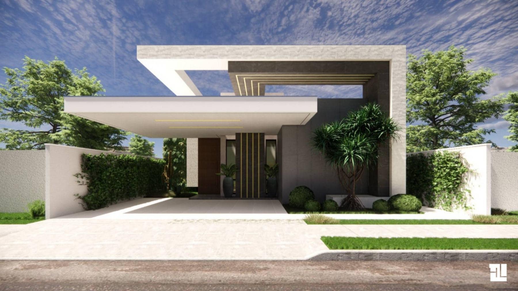 A presença da vegetação é integrada de forma sutil através de um canteiro frontal. Essa combinação entre o concreto e a vegetação traz uma sensação de equilíbrio e harmonia à fachada.