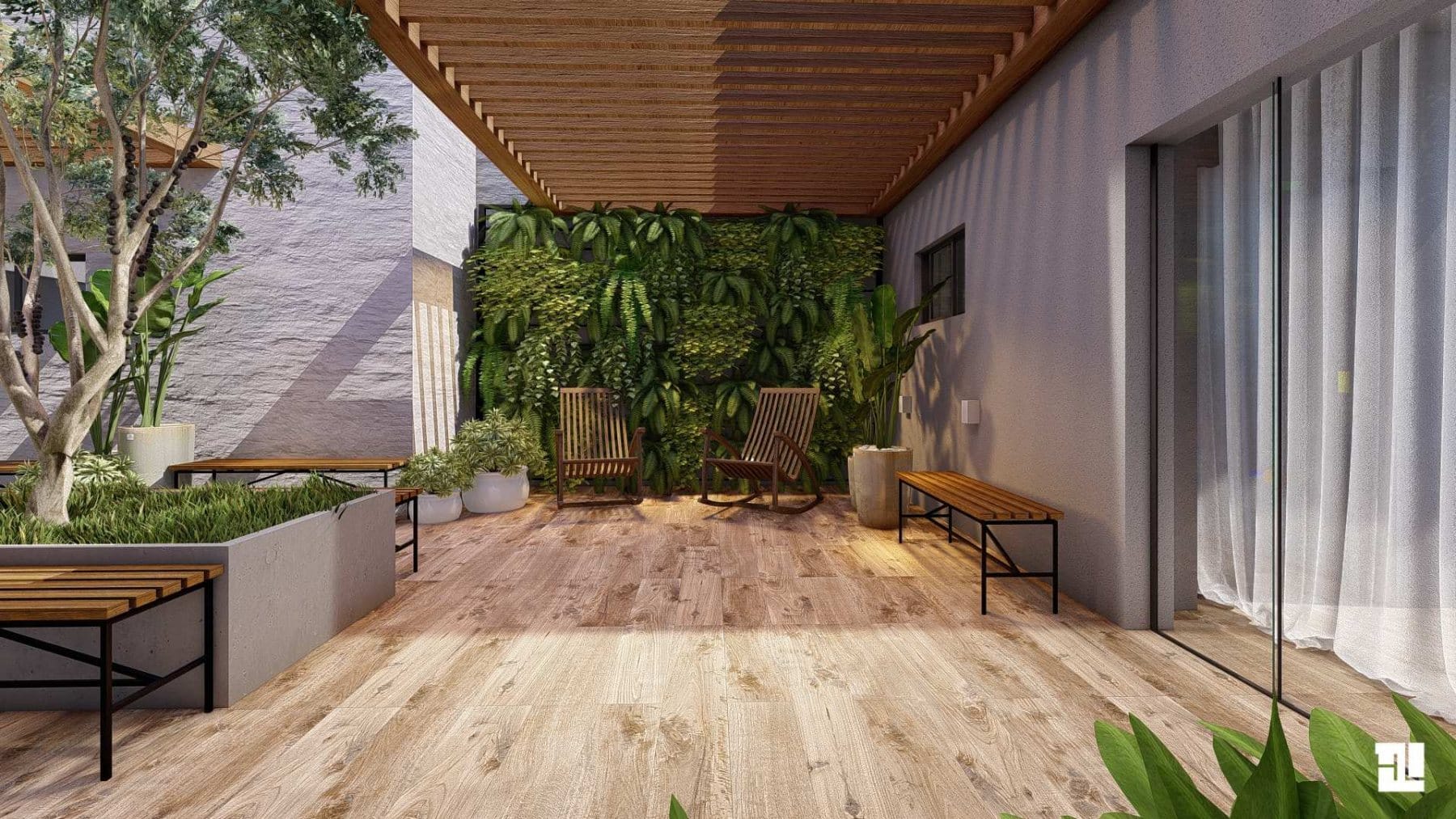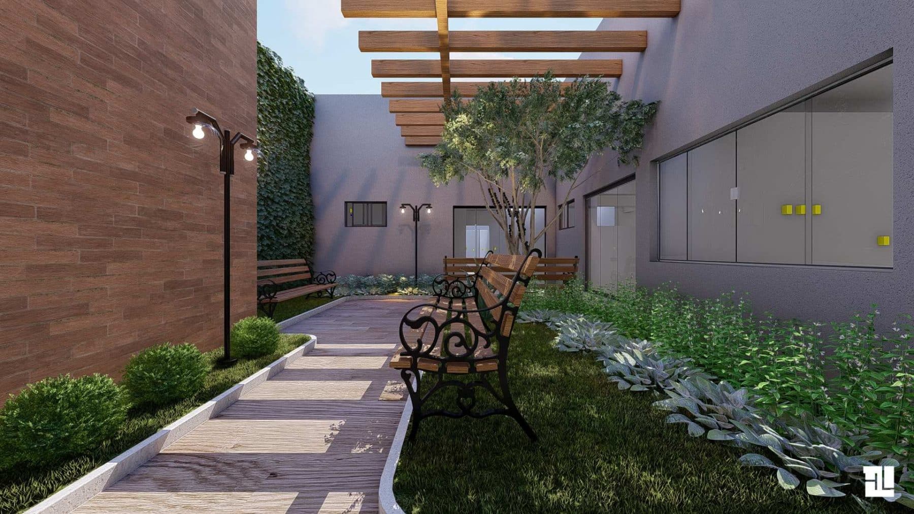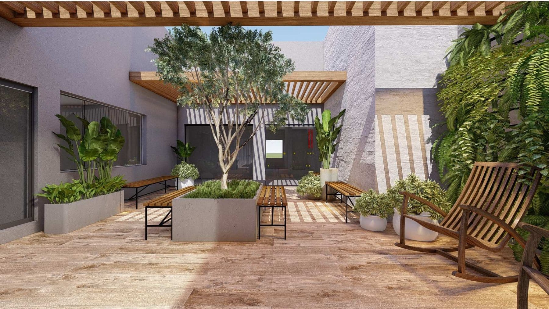 Nosso escritório de arquitetura tem o prazer de apresentar um projeto arquitetônico para uma área de convivência destinada aos pacientes do hospital. Com um foco especial na criação de um ambiente tranquilo e rejuvenescedor, o projeto busca trazer a natureza para o espaço interno do hospital, utilizando uma combinação de vegetação exuberante e elementos de madeira que evocam uma sensação de calmaria.
