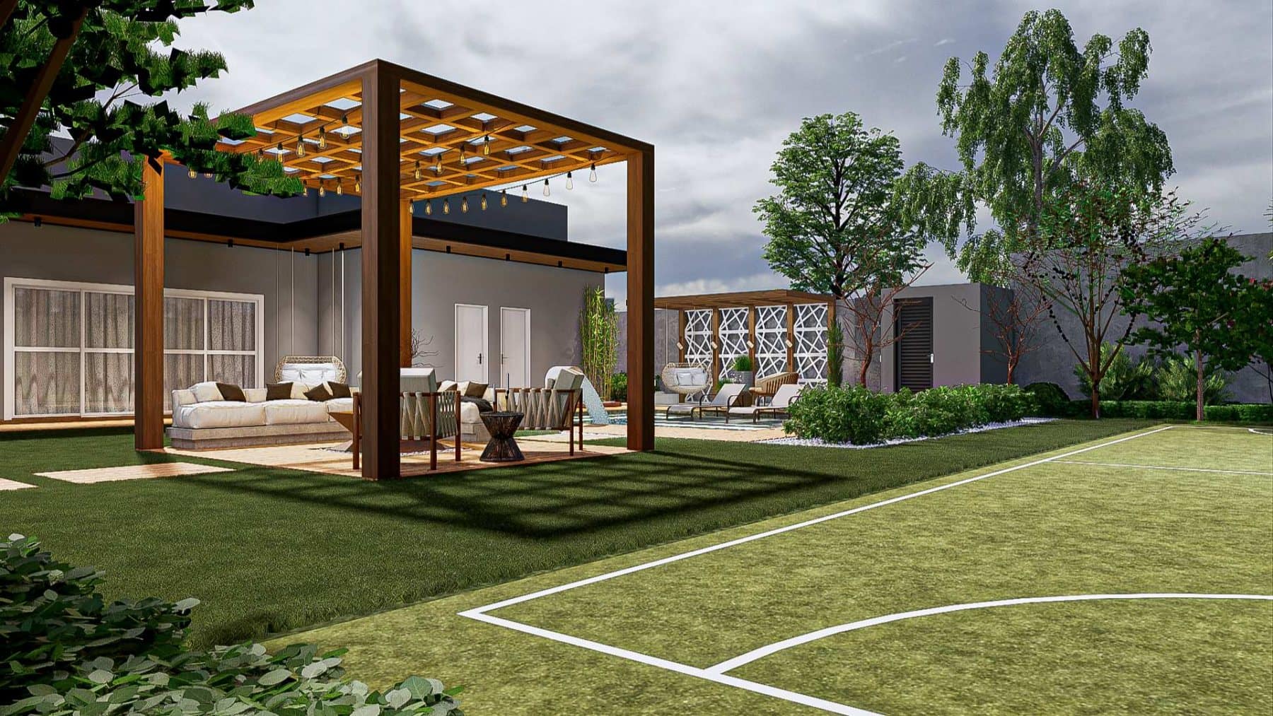 Esse projeto arquitetônico do seu escritório proporciona uma área de lazer completa, elegante e funcional. Cada espaço foi cuidadosamente planejado para oferecer momentos de diversão, relaxamento e convivência, ao mesmo tempo em que se harmoniza com o ambiente natural ao redor. Sem dúvida, um lugar perfeito para desfrutar de momentos inesquecíveis com familiares e amigos.
