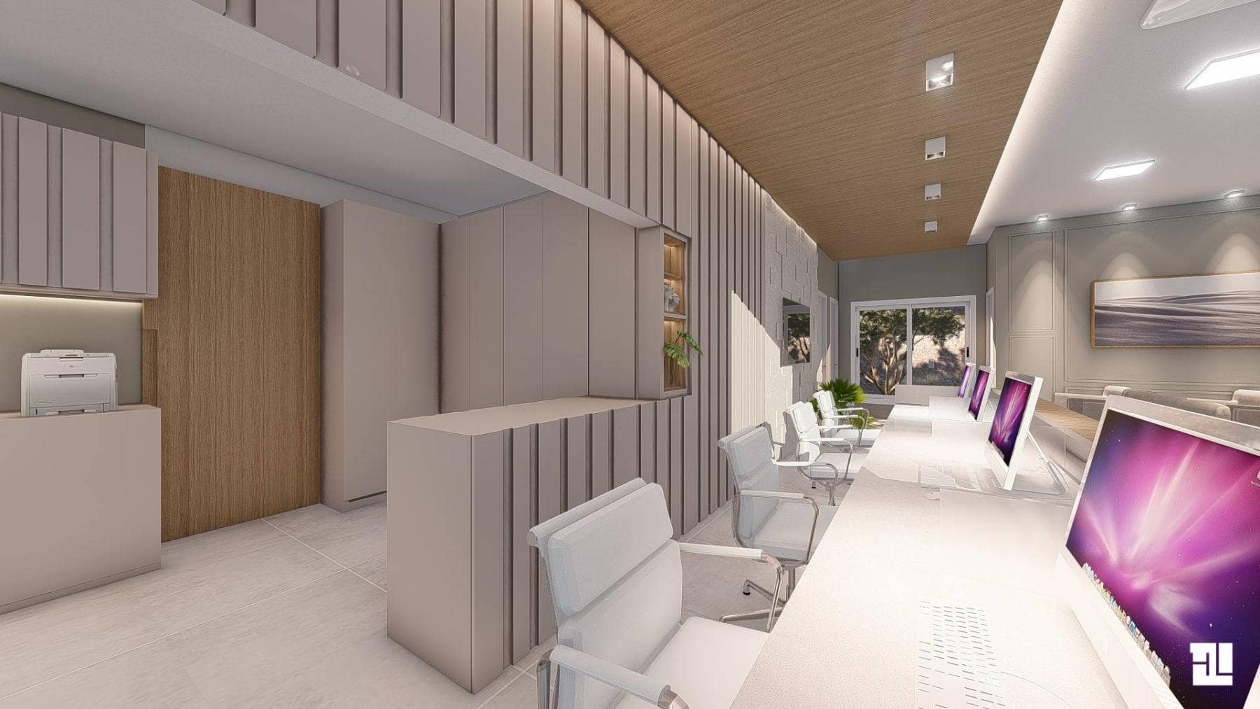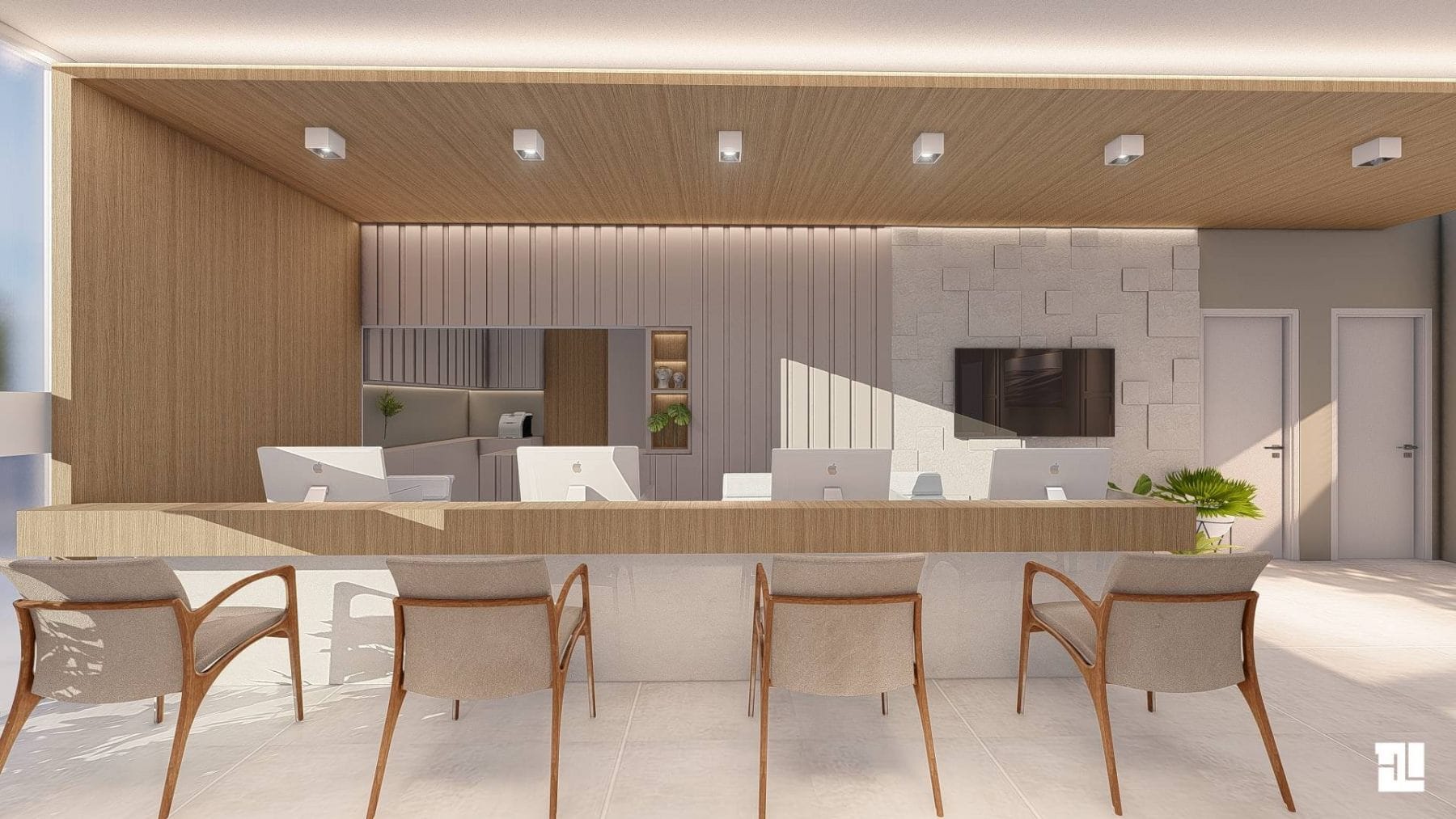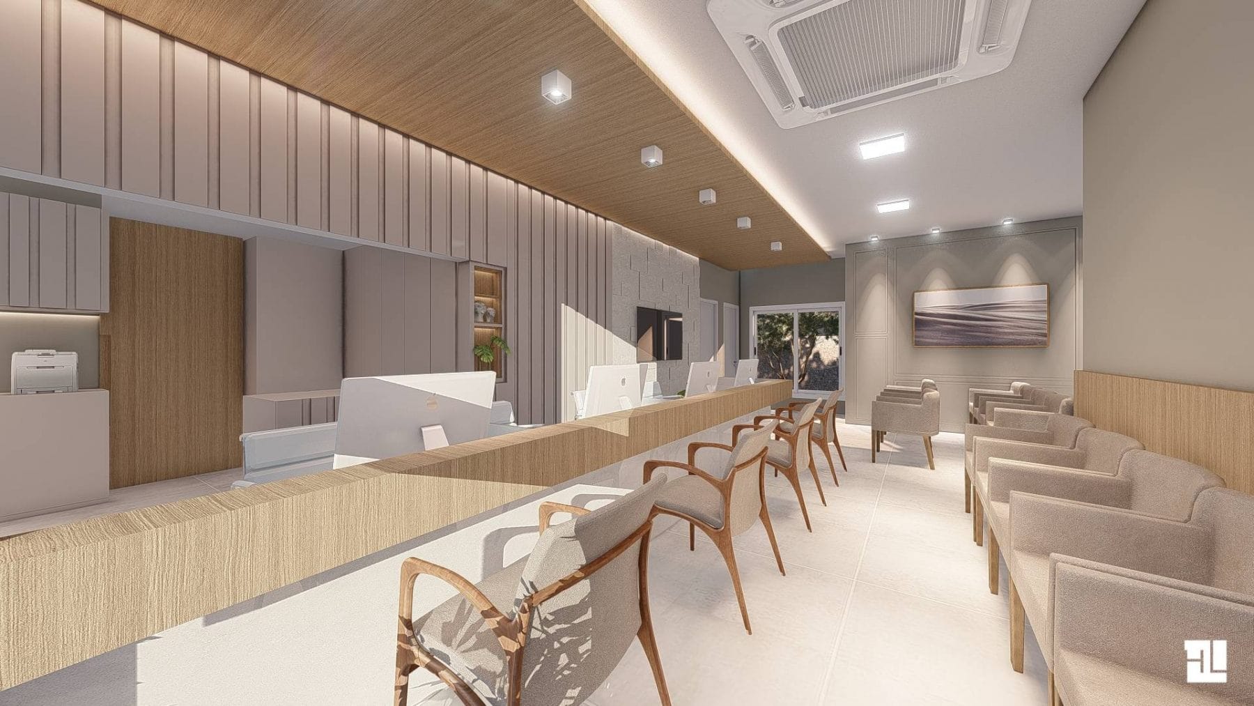 A recepção do Hospital e Maternidade foi projetada para oferecer um ambiente acolhedor e humano. Com a utilização da madeira e uma iluminação suave, buscamos transmitir conforto e tranquilidade aos pacientes, familiares e visitantes. A sala de espera conta com boiserieres e uma disposição cuidadosa dos móveis, promovendo o acolhimento. A tecnologia foi incorporada de forma eficiente, facilitando a comunicação e orientação dos visitantes. Em cada detalhe, o projeto transmite amor e cuidado, criando um espaço que prioriza o bem-estar e o conforto dos usuários.