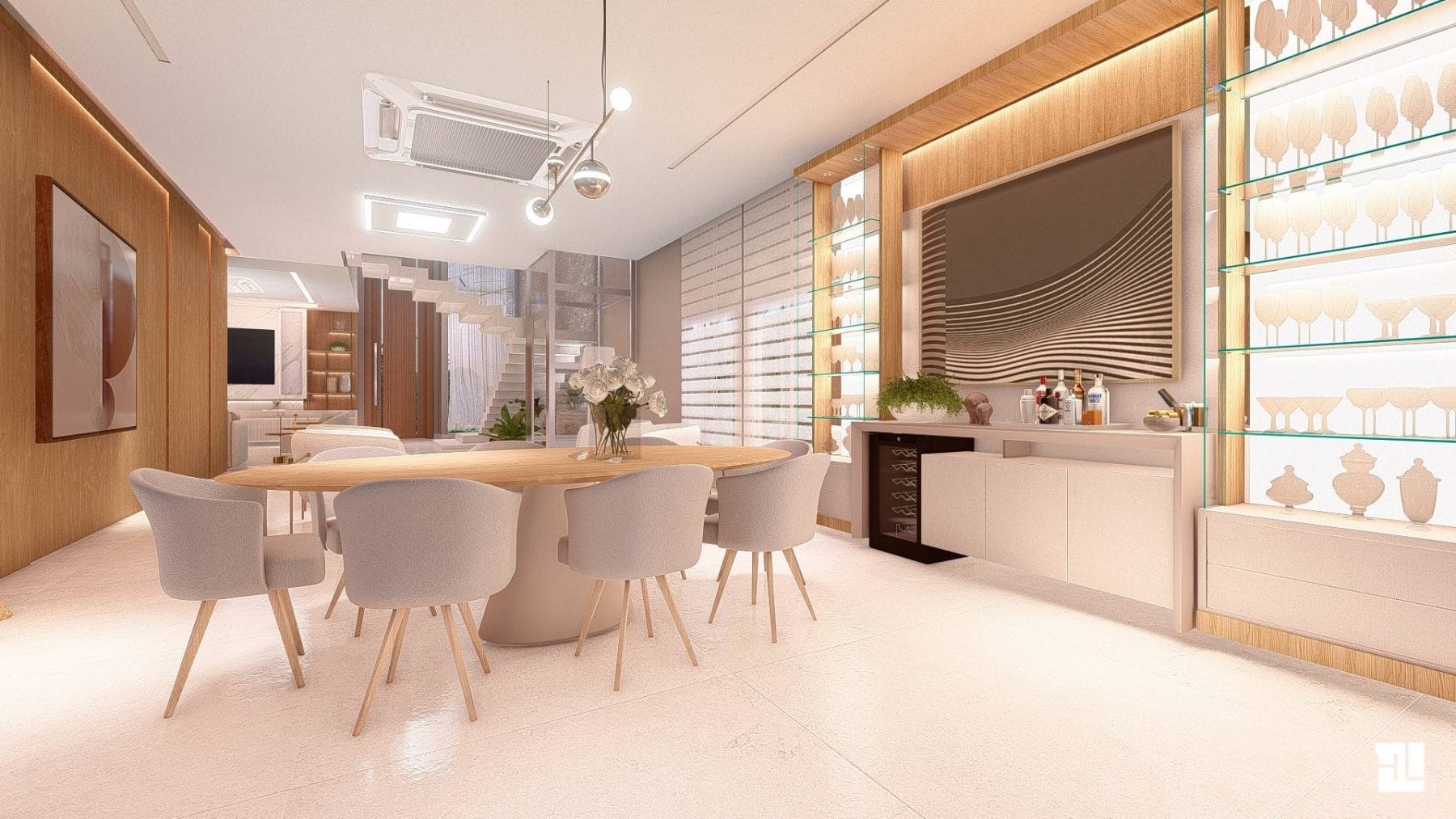 O projeto arquitetônico desse sobrado elegante, destaca-se por sua estética clássica e sofisticada. Com diversos ambientes que fluem entre si de forma harmoniosa, a casa transmite requinte e bom gosto em cada detalhe. A combinação de materiais nobres, acabamentos refinados e um design cuidadoso resulta em um espaço elegante e acolhedor, perfeito para os moradores desfrutarem de uma vida sofisticada e confortável.